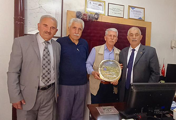 BEYPAZARI (YT)-Bartın ili Ulus ilçesi Kumluca Beldesi Keçideresi Köyü Muhtarı İbrahim Özer ve İşadamı Osman Özer birlikte, Gazeteci Yaşar Tonbak’ı çalışma ofisinde ziyaret etti. Beypazarı Ziyaretinde bulunan Keçideresi Köyü Muhtarı ve İş adamı Osman Özer, Saffet Çetinalp ile birlikte Gazeteci Yaşar Tonbak’ı çalışma ofisinde ziyaret ederek, çeşitli konularda görüş alışverişinde bulundu. Muhtar İbrahim Özer, köyüne yaptığı çalışmaları kısaca özetlerken, daha yapacak çok işleri olduğunu söyledi. İş adamı Osman Özer’de, ilerinin yoğunluğundan bahsederken, Bartın ticaret Odası yönetim kurulu üyesi olduğunu ve birçok konuyu burada gündeme getirmeye davam ettiğini söyledi. DUVAR SAATİ HEDİYE EDİLDİ: Ziyaretin anısına, Muhtar İbrahim Özer tarafından Gazeteci Yaşar Tonbak’a özel olarak yaptırılan Duvar saati hediye edildi. Gazeteci ve AA-TRT Muhabiri Yaşar Tonbak, Muhtar İbrahim Özer ve İş adamı Osman Özer ve Saffet Çetinalp’in birlikte kendilerine yaptığı ziyaretten duyduğu memnuniyeti dile getirerek, teşekkürlerini sundu: