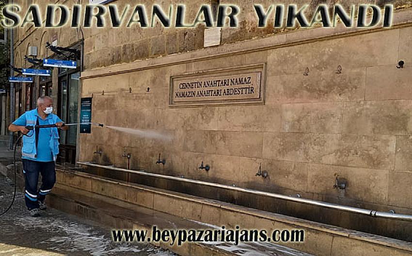 | -Beypazarı belediyesi temizlik işleri müdürlüğü, Cuma namazı öncesinde perşembe günü ve bu gün sabah saatlerinden itibaren şadırvanları yıkayarak tertemiz hale getirdi.. | ||
