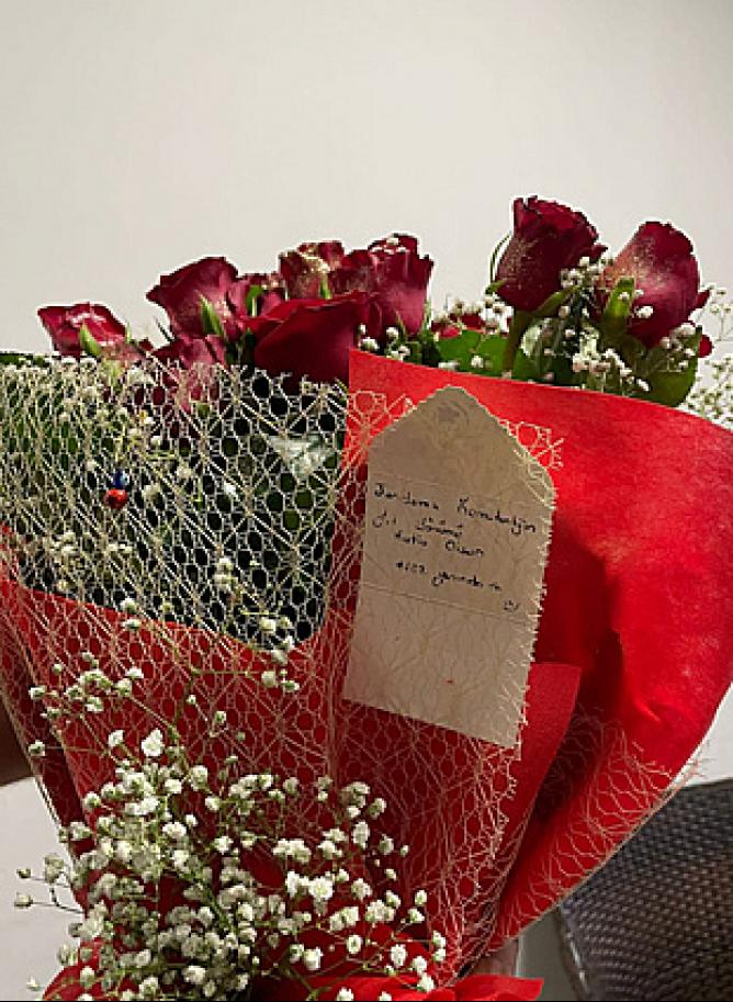 | -Beypazarı İlçesinde iki kız arkadaş, yaptırdıkları çikolata ve çiçekle Jandarmanın 182. kuruluş yıl dönümünü kutladı. | ||