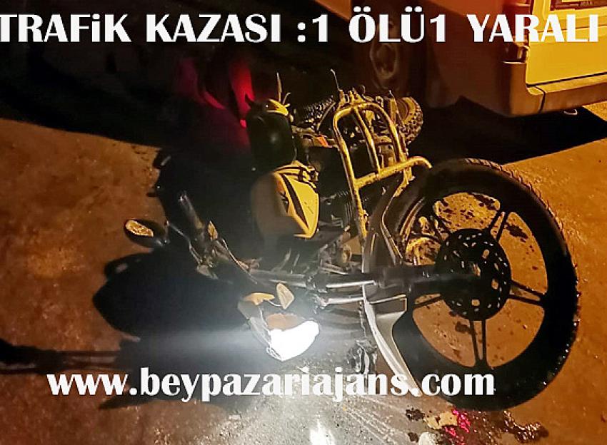 BEYPAZARI (YT)- Beypazarı İlçesinde dün gece saatlerinde bindikleri motosikletle karşıdan gelen araca çarpan Afgan’lı gençlerden biri hayatını kaybederken diğeri de yaralandı. Beypazarı İlçesinin Kayabükü girişinde gece sıralarında meydana gelen kazada, karşı yönden gelen ve minübüs aracına çarpması sonrasında, adı açıklanmayan Motosiklet sürücüsü Afgan’lı genç, kaza mahallinde hayatını kaybederken, yanındaki arkadaşı olan kişi de ağır yaralandı. Ağır yaralanan Afganlı’nın Beypazarı Devlet Hastanesine kaldırılması ve yapılan ilk tedavisinin ardından Ankara şehir hastanesine gönderildi.