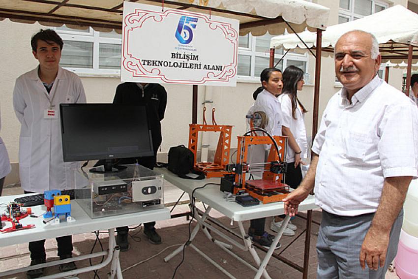 BEYPAZARI (YT)- Beypazarı Fatih Mesleki ve Teknik Anadolu lisesi, ülke genelinde ve ilçe genelinde yaptığı birçok başarılı çalışmalarla göz doldurmuş ve 2021 yılı içinde elde ettiği gelirle de Türkiye 1.si olmuş bir okulumuz. Okulun çeşitli alan ve bölümlerinde üretilen ürünlerin sergisi bu gün okulun bahçesinde İlçe Milli Eğitim müdürü Hürrem Dursun tarafından açılarak gezilirken, okulun başarılarından da söz edildi. 2021 yılında elde ettiği gelirle Türkiye’de Meslek liseleri arasında 1. Olan okul, 2021 yılında elde ettiği gelirin, 2022 yılının ilk 6 ayında 3 katını geçtiği kaydedildi. Okulun bahçesinde düzenlenen törenle,2022 yılında çeşitli dal ve branşlarda dereceye giren öğrencilere ödülleri verildi. Halen okulun atölyelerinde Deney seti, Okul masaları(sıraları) dezenfektan, Sanatçı koltuğu, Öğretmen dolapları gibi birçok alanda üretimler sürüyor. Okulun bahçesinde ve koridorlarında açılan sergi-fotoğraf sergisi ilçe Milli Eğitim müdürü Hürrem Dursun tarafından beğenildi. Serginin açılışına, İlçe Milli Eğitim Müdürü Hürrem Dursun, Şube müdürü Selahattin Sütbaş, Emniyet Müdürü Metin Demirci(2.ci sınıf), Emniyet Müdürü, müdür yardımcısı Necati Akıncı(4.sınıf), okul müdürü Nuri Caner, okulun öğretmenleri ve öğrencileri ile davetliler katıldı. Okul müdürü Nuri Caner, 455 Öğrencinin eğitim öğretim gördüğü okullarında, okullarının gelirini daha da artırmanın çabasında olduklarını ve çeşitli alanlarda çalışan öğrencilerinde para kazandığını kaydetti.
