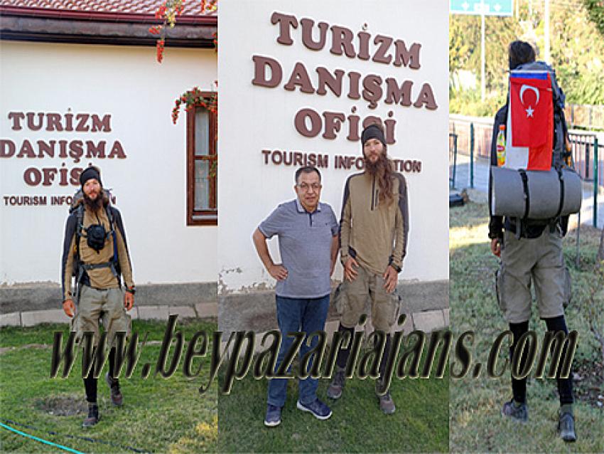 | Çek Cumhuriyeti vatandaşı, başladığı yürüyüş yolculuğunda Beypazarı’nda verdi mola: | ||