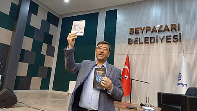 BEYPAZARI (YT)- Beypazarı İlçe Milli Eğitim Müdürlüğü tarafından “Beypazarı Okuyor” Programı çerçevesinde Eğitimci Yazar İdris Göbütoğlu, söyleşiye katıldı. Belediye toplantı salonunda düzenlenen “Beypazarı Okuyor” Programı çerçevesinde İlçe milli Eğitim müdürlüğü tarafından tertiplenen Programa Eğitimci yazar İdris Göbütoğlu, Liman yayınlarından çıkan “Paradoks Adlı” romanı hakkında söyleşide bulunuldu. Yazar Göbütoğlu, kendisini anlatarak başladığı söyleşisinde, çeşitli ülkelerde görevlerde bulunduğunu ve bu anlamda “Paradoks Girdabı” adlı romanın ortaya çıktığını ve tabiki kısa zamanda ortaya çıkmadığını, uzun süren çalışmalar sonrasında siz değerli okuyuculara sunulduğunu söyledi. Çok sayıda kişinin katıldığı söyleşide, yazar ikinci baskınında hazırlıklarının yapıldığını aktarırken Yazara, İlçe Milli Eğitim Müdürü cengiz Yılmaz, tarafından günün anısına çiçek takdim edilirtken, "Beypazarı Okuyor" projesi kapsamında gelecek hafta söyleşiye, bölgemiz değerleirnden Şair ve Yazar Vedat Güneş'in konuk olacağını aktardı. Yazar, söyleşinin sonunda okurları için Kitaplarını da imzaladı.